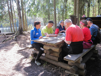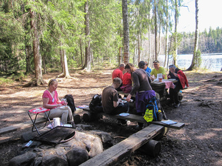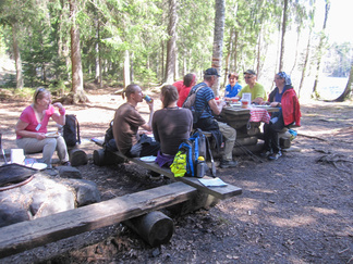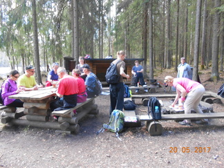 Pohjoispään kallioilla pidimme taas pidemmän tauon nauttien eväistämme. Riihimäkeläis- seurueen vastaavana toiminut opettaja yllätti. Hän oli kantanut repussaan useita termospullollisia kahvia sekä leipomaansa boston-kakkua. Tarjoilu seurueellemme oli ylenpalttinen!