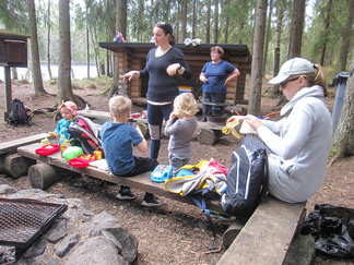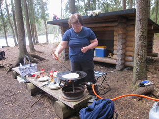 Haiskarin laavulla saimme ihanan vastaanoton letunpaistajilta. Pöytään -komentoa ei tarvinnut odottaa. Hyvältä maistuivat letut, vaikka juuri olimme syöneet eväämme Suolijärvellä. Aistien tanssia koko retki. Maut kohdillaan, samoin näkymät, linnut viserryksineen.