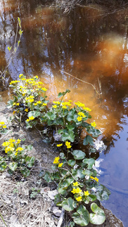 Liikkeellelähtö onnistuneessa odottavassa mielentilassa! Ulkoilukartat ja Latu-esitteet oli jaettu jokaiselle. Ihmettelyä, jutustelua sieltä täältä, matkallaolo tuntui mukavalta. Juomatauot ja pysähdykset sovittiin pidettäviksi puolen tunnin välein. Tutkailin tien varren kasveja, kevätlinnunsilmä, poimulehti, maitohorsma. Niitä poimittiin maisteltaviksi. Sivusilmällä tuli seurattua niitä, jotka olivat pukeutuneet vahvimmin, kerroksia… Yllättääkö väsymys tai muu uupuminen. Kaikki oli kuitenkin hyvin.