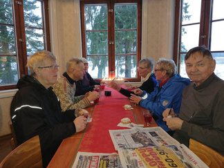 Kävelimme kartanoravintolaan ja nautimme siellä lähestyvän joulun kunniaksi kuumaa glögijuomaa torttujen ja pullan kera. Ihastelimme ravintolan sisätiloissa olevaa hevostaulujen näyttelyä. Taiteilija oli hienosti piilottanut eläimen muodot räiskyvien värien taakse.