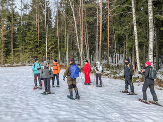 Jäälle mekin suunnistimme saatuamme lumikengät jalkaan ja pidettyämme alkuinfon.