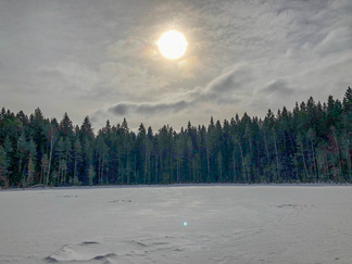 Usminjärventien ylitimme latupohjaa seuraten kohti parkkipaikkaa. Matkaakin tuki huimat 4 km ja muutama päälle, aikaa tuhersimme reilut pari tuntia. Auriko paistoi, Urojärvellä tuli hieman lunta, joten sitä riittänee myös ensi sunnuntain lumikenkäilyyn.