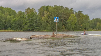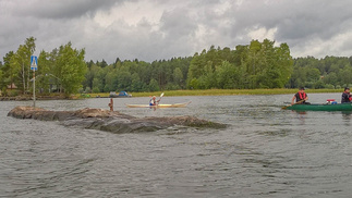 Oli alkanut hieman tuulemaan etelä lounaasta, otimme kuitenkin suunnan länteen ja kiersimme Mustasaaren eteläpuolelta myötäpäivään. Saimme hieman aallokkoa ja tuulta sivulta, mutta pian olimme taas saaren suojassa. Meinasi vielä ruveta satamaankin, saaren kierron jälkeen takaisin uimarannalle ja sadenuttuja ylle.