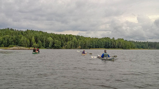 Lohjan edustalla on usean saaren muodostama sokkelikko mitä lähdimme kiertelemään. Keli oli aamusta tyven ja pilvipoutainen, meloimme ensin Liessaaren itä rantaa kohti pohjoista, kurvasimme Ollinsaaren ja Hevossaaren välistä ruovikon läpi. Löysimme itsemme Muutettavansaaren eteläpuolelta, kiersimme sen länsipään kautta ja katsastimme Kaurassaaren itäpuolen laavupaikkaa.