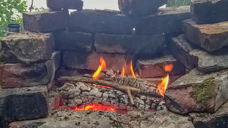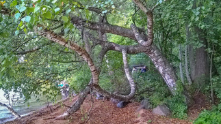 Ehdimme ja kastuakin matkalla, laavulle tulet, vaatteita vaihtoon eväitä syömään. Rannassa oli isoja lehtipuita ja pähkinäpensaita, laavut alueella olivat aika pienikokoisia, puuhuoltoa ei ollut, onneksi olivat omat puut följyssä. Muutenkin taukopaikat olivat hieman eri tasoa, kuin muutama viikko aiemmin Hiidenveden hienot taukopaikat.