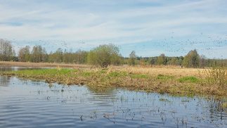Matkalla havaitsimme useita lintuja, pääosin vesilintuja. Tuulensuunjoella pellon ja joen rajalla oli valtava pääosin hanhista muodostunut lauma maassa, kymmenkunta joutsentakin joukossa. Niitä oli varmaan sadan metrin matkalla, lähemmäs päästyämme ne lehahtivat lentoon kolmessa erässä, varmaan useita satoja lintuja.
