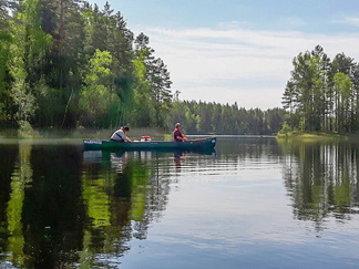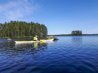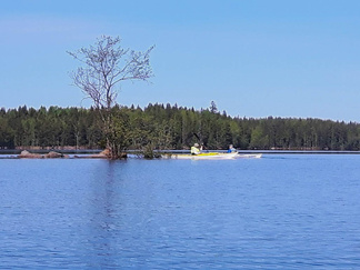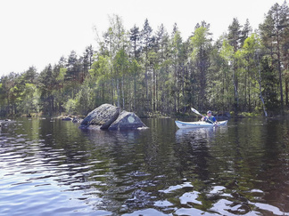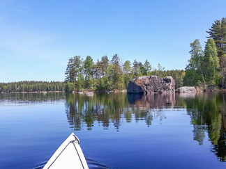 Järvi on melko kivinen, kosketuksia tuli usein ja muutaman kerran jäi joku kiinni kiveen tai pohjaan. Myös tuuli virisi iltapäivästä, se oli hyväksi, hieman virkisti meloa vastatuuleen.