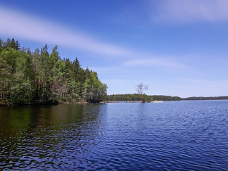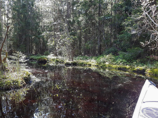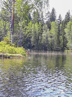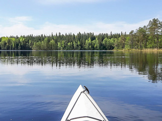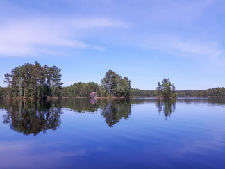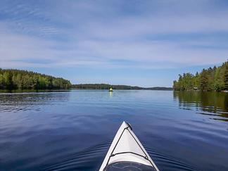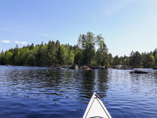 Sieltä meloimme melko suoraa länsirantaa etelään lähtöpaikalle. Matkalla haeskelimme vielä Lehmälammelta tulevaa ojaa, muttei osunut näkösälle.