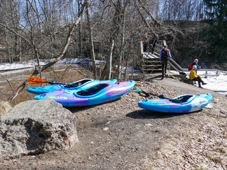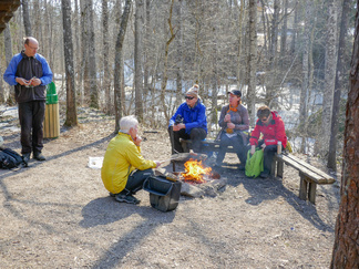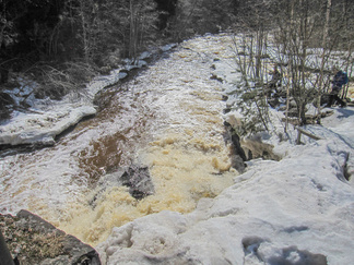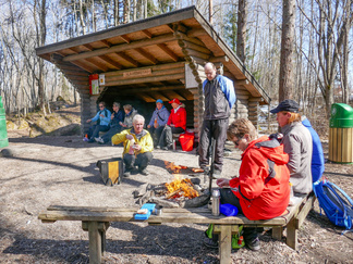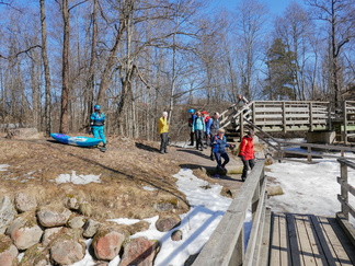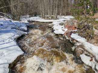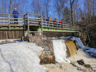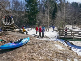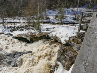 Pyöräretki nivelpiiriläisten kanssa toteutui mallikkaasti. Aurinkoisessa säässä lähti yhdeksän pyöräilijää ja kolme henkilöä tuli autolla Nukarinkoskelle. Pyörillä ajelimme pääosin asfaltoituja pyöräteitä ja ajoradanreunaa turvallisuussuunnitelmassa annetun reitin mukaan. Metsäkalteva oli joillekin uusi kohde ja Attendon palvelutalo puhutti. Verkkainen pyöräilyvauhti antoi aikaa havainnoida luontokokemuksia. Rantakulmalla bongasimme kauriita pelolla ja jäniksiä juoksenteli metsänreunassa. Kuuntelimme muuttolintujen lintujen laulua, puolikuuta peipposesta jne.. Nukarinkosken kohina kuului jo parkkipaikalle asti. Vettä oli runsaasti, mutta koski oli osin vielä lumen ja jään vallassa. Neljä koskikanoottia oli rannalla. Koskenlaskuun houkutteli runsas vesimäärä. Koskenlasku oli kuulemma kevyttä verrattuna siihen kun kantoi ylämäkeen n. 20 kg painavaa kanoottia uudelleen laskua varten. Nuotiolle menevät pitkospuut olivat osin lumen peitossa. Tarjalla oli polttopuut matkassa, joten saimme tulet tehtyä ja makkarat paistettua. Paluumatkalla, Rantakulman kohdilla lentelivät perhoset. Leskenlehdet kukkivat tienvarsilla. Matkaa kertyi noin 30 km ja aikaa meni 3 h 30 min. Hyvillä mielin ja rentoutuneena pitkästä matkasta palasimme Hyvinkäälle. Markkinat eivät enää kiinnostaneet.