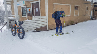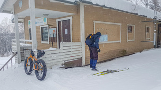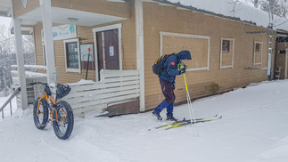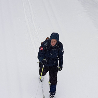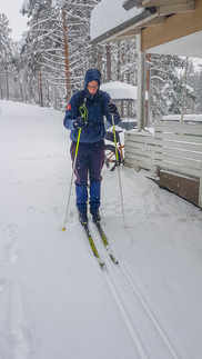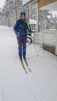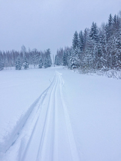 Munkkikahvit nautittuani lähdin hipsimään taas kotikaupunkia kohti. Nyt lumisade näytti joksikin aikaa taukoavan, mutta Omalta Kodilta tulevan tien ylitettyäni, alkoi pikkuhiljaa tihuttaa vettä. Pääsin kuitenkin takaisin Erkylään ilman sen suurempia ongelmia. Päinvastoin vanhat Zeroni alkoivat luistamaan paremmin sään lämmetessä. Erkylästä lähdettäessä ei siis latukonetta reitille ollut eksynyt ja nyt tuo vesisade oli jo sen verran ehtinyt pehmeää latu-uraa kastuttaa, että ylämäissä oli jo sillä hilkulla, ettei olisi tarvinnut ryhtyä suksia varta vasten puhdistamaan, eli kaivaa se repun sivutaskuun varattu sikli esiin. Selvisin kuitenkin säikähdyksellä ja Sveitsin latureiteiltä löytyikin sitten jo hiihdetympää, eli tamppautunutta lunta, joka myös liu’utti suksea upeasti. Kotiin saavuin klo 16 korvilla, voisi sanoa siis, että melko täydellinen työpäivä.