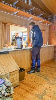 Suonummen majalle saavuin puoli yhden korvilla huomatakseni olevan ainoa vieras. Edellisenä päivänä samassa savussa kuitenkin vieraili puolenkymmentä vierasta siellä vieraillessani. Kanttiinia pitänyt naishenkilö oli kuitenkin puheliaalla päällä, joten sain kuulla esimerkiksi, että yhdistystämme varten aamulla tuota latua oli avaamassa peräti kaksi kelkkaa, toinen Kiistaveikoilta ja toinen Riihimäen retkeilijöiltä. Harmittelinkin emännälle, ettei meitä tällä kertaa matkaan ollut saatu yhtään useampaa hiihtäjää. Muistelin, että parhaimmillaan suksenkantojani seuraamassa on ollut jopa viidentoista hiihtäjän letka, yleisimmin kuitenkin 3 – 6 suksijaa. Kahteen viime vuoteen emme ole noita latuja kuitenkaan päässeet testaamaan lumenpuutteen vuoksi.