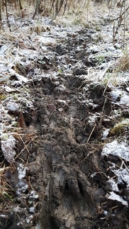 Matka jatkui Usmintietä majalle päin, käännyimme Tiikerinsuon tielle ja yhytimme tien yli kulkevan tuoreen kauriinpolun. Tieltä siirryimme ulkoilureitille ja Tiikerinsuon eteläpään kautta Latu-Miiluun.