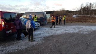 Päätimme siirtyä autoillen hieman edemmäs ns. peltoparkkiin Hyyppäräntien varteen hieman kylmän länsi (vastatuulen) tuulen vuoksi, samalla lyhenisi tylsähkö kävely Hyyppärän suoralla.