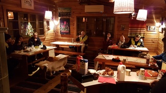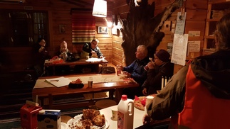 Taukoilimme sisätiloissa nauttien pikkujoulujen jäännöspaloja, kaakkua, pipareita, mehua ja suklaanamuja. Linnutkin tuli ruokittua ja kaivosta saimme taas vettä, runsaat sateet ovat nostaneet pohjaveden pintaa, joten tänä talvena ei todennäköisesti tarvitse vettä majalle tuoda muualta.