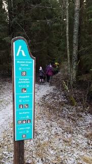 Matka jatkui Usmintietä majalle päin, käännyimme Tiikerinsuon tielle ja yhytimme tien yli kulkevan tuoreen kauriinpolun. Tieltä siirryimme ulkoilureitille ja Tiikerinsuon eteläpään kautta Latu-Miiluun.
