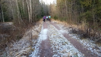 Matkaakin tuli rapiat 8 km, aikaa käytimme 3 tuntia. Jarmon kuvia alapuolella, sportträkkeri mittasi keskinopeudeksi 3 km/h, mikä on rinkkavaelluksella laskennallinen kulkuvauhti, eli kiirusta emme pitäneet vaan nautimme metsän rauhasta. Ainakin tältä porukalta hävisi ”joulustressi” vähäksi aikaa, jos sitä olikaan. Isompaa stressiä ei kannata hankkia, joulu tulee ja joulu menee.