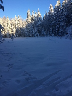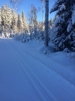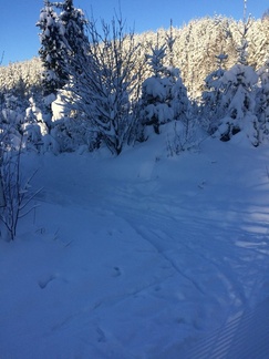 Risteyksestä missä piti joko matkaa jatkaa Piilolammen suuntaan tai kääntyä Ladun majalle, löytyi taas latukoneen jäljet ja luisto suksissamme parani välittömästi. Loppumatka majalle sujuikin varsin sukkelaan.