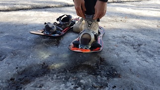 Autoilla kengät jalasta ja hieman ravistusta, eli viimeiset lumet pois kengistä, ainakin tältä reissulta.