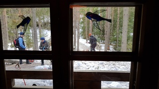 Soile päivysti majalla ja tarjoili tuoreet pullat ja kahvit, kiitos. Oli siellä muitakin kävijöitä käynyt, myös hiihtäjiä, olihan siinä vielä hyvä latu eilen, vaan nyt oli joku ajanut autolla pitkin latupohjaa kohti Kypärää.