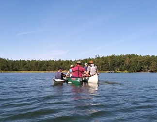 Viikonloppumelontamme supistui lauantaina aamulla kanoottiparkissa päätetyllä yhteisellä sopimuksella hieman pidemmäksi päivämelonnaksi, johtuen sunnuntaiksi luvatusta sateesta ja tuulesta. Samalla sovimme melonnan kohteeksi Bärosundin, ja siellä Orslandetin saaren kierron.