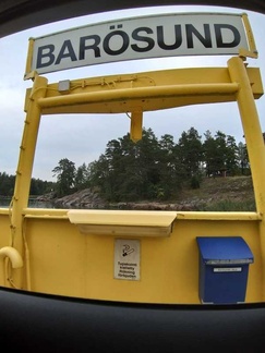 Tullfladanin laivaväylää seuraten melasimme koilliseen Bärösundin lautan ja sataman ohi takaisin Ramsinsalmeen ja rantauduimme Elisaaren (Älgsjö) rantaan. Rantautuminen oli hieman vaikeaa korkean laiturin vuoksi, joka on tarkoitettu isoille veneille, mutta ylös pääsimme.