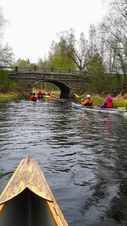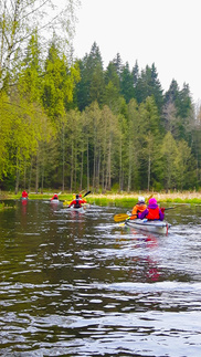 Räikälän joen mutkissa kajakkien ohjausnarutkin vetreytyivät talven jälkeen, matka oli hiljainen ainoastaan lintujen ääniä, paitsi kun alitimme E75 siirtyessämme Kuontolan järveltä Viralan järvelle.