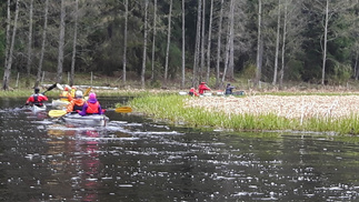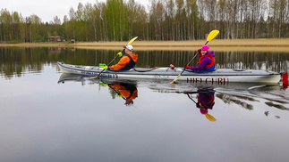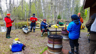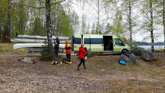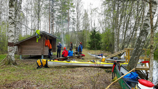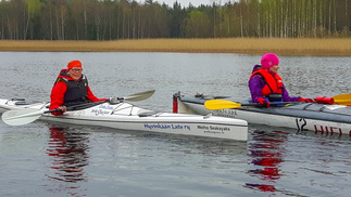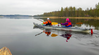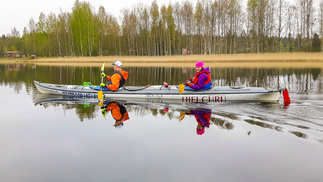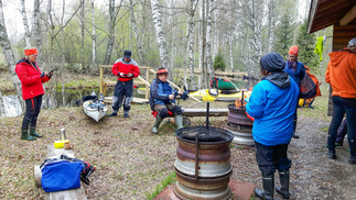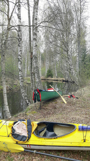 Räikälän joen mutkissa kajakkien ohjausnarutkin vetreytyivät talven jälkeen, matka oli hiljainen ainoastaan lintujen ääniä, paitsi kun alitimme E75 siirtyessämme Kuontolan järveltä Viralan järvelle.