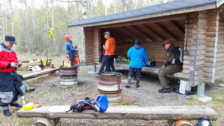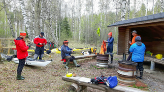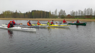 Hyvä melontakauden aloitus, 12 ilmoittautunutta. Aamulla yksi soitti ja kertoi nukkuneensa ns. pommiin, toiselle tuli muuta menoa. Mutta hyvä saldo silti 10 lähtijää, yksi kaksikko, yksikkö ja avokas jäivät plaanille.