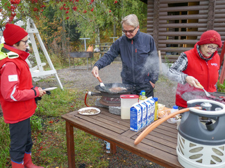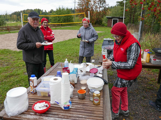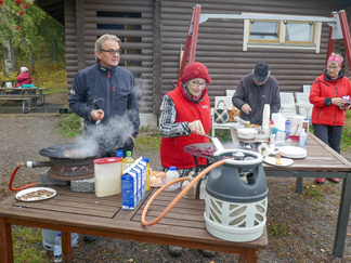 Hyvinkään Ladun ja Hyvinkään Sydänyhdistyksen yhteinen ruskaretki suuntautui Rytkön leirikeskukseen Kytäjällä. Maailman sydänpäivänä toteutetulle retkelle oli lähtenyt kolmisenkymmentä henkilöä. Retkeläiset pääsivät kokeilemaan melontaa Ladun inkkarikanooteilla, pelaamaan petankkia ja mölkkyä ja nauttimaan muurikalla paistetuista räiskäleistä sekä juureksista. Tietenkin keittelimme nokipannukahvit ja grillailimme nuotiolla eväitämme. Sauna oli lämmitetty ja useampi sen löylyihin uskaltautuikin.