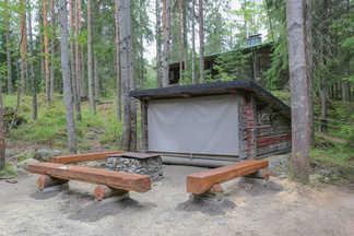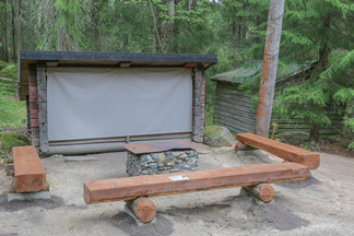 Päätimme jättää pätkityt haapapöllit laavulle, sillä puuliiteri on jokseenkin täynnä. Retkeilijät, jotka haluavat ja joilla on kirves mukanaan, voivat halkoa niistä polttopuita tulisijaan.