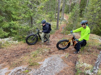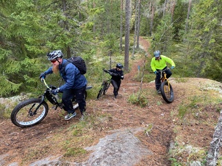 Sieltä ajeltiin paikoin haastaviakin reittejä Iso-Kypärän kautta Kiiskilammelle makkaranpaistoon.