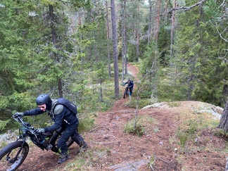 Sieltä ajeltiin paikoin haastaviakin reittejä Iso-Kypärän kautta Kiiskilammelle makkaranpaistoon.