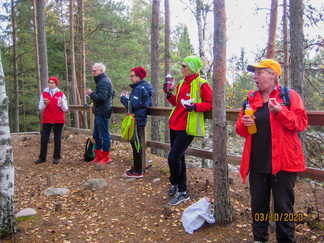 Lauantaina 03.10. tehtiin yhdessä Hyvinkään sydänyhdistyksen kanssa Ruskaretki Suomiehen luontopolulle. Puolet osallistujista varustautui kulkemaan retken polkupyörillä ja toinen puoli, 9 henkilöä suoriutui matkasta autokyydein. Polkupyöräilijöiden yhteislähtö oli aamukymmeneltä Puolimatkan koululta, kimppakyytiläiset lähtivät matkaan Onnensillasta puoli tuntia myöhemmin. Matka Suomieheen, Jukan metsätien P-paikalle pyöräillen Nopon kautta oli n. 11 kilometrin mittainen. Ajelimme lähes koko menomatkan käyttäen kevyen liikenteen väyliä, joten matkanteko oli turvallista. Sää oli mainio ja vaikka ilmakin oli erinomainen, ainoastaan yhden kerran pumppasimme sitä Kattopeitteentien kohdalla ja vain yhden retkeläisen renkaisiin.