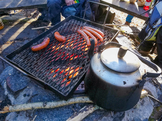 Nuotiopaikka oli juuri sopivasti tyhjenemässä edellisistä käyttäjistä, tulet jouduimme kuitenkin tekemään, entiset olivat jo hiipuneet.