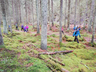 kilometrin kuljettuamme käännyimme ylämäkeen ja metsän siimekseen kohti Niemisen
