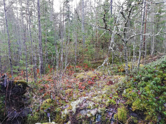 niittyä vievälle uralle. Nousimme niityn viereiselle mäelle ihailemaan metsän rauhaa,