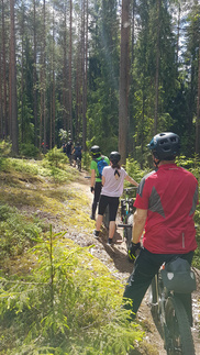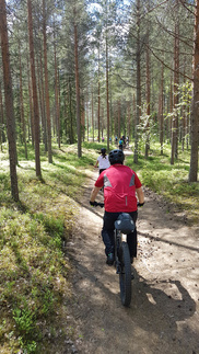 Maastopyöräilyn aloittelijalenkki oli lauantaina 13. kesäkuuta. Lähtöön konepajan P-paikalle meitä oli kokoontunut 12 kaikkiaan. Vetäjä Niko Kurikka ohjeisti meitä ennen ajoa. Kävimme läpi käsiohjeet, koronaohjeet ja muita ajoon liittyviä asioita, kuten esim. kypärän säädöt. Ohjeistuksen jälkeen lähdimme ajamaan suuntana Rutikka, jonne ajettiin Nikon suunnittelemaa reittiä. Päivä oli helteinen ja pidimme useita juomataukoja. Rutikalla pidettiin pidempi tauko. Paluumatka sujui yhtä mukavasti kuin menomatkakin, ilman teknisiä murheita. Parin tunnin jälkeen olimme takaisin lähtöpaikalla. Vetäjälle ja perämiehelle jäi fiilis, että mukavaa oli ja tällaisia lenkeillä on kysyntää.