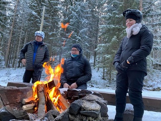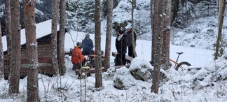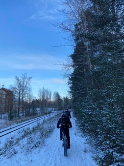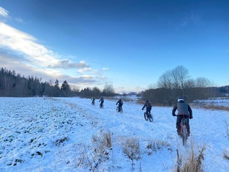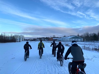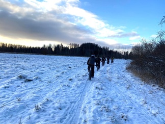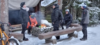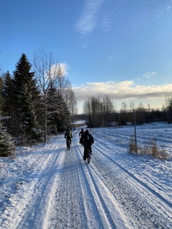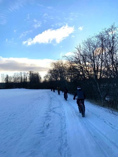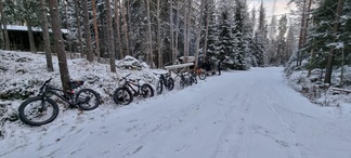 4.12. Global fatbike day lenkki polkaistiin kuuden hengen porukalla Jasan johtaessa joukkoa ladun majalle makkaranpaistoon.