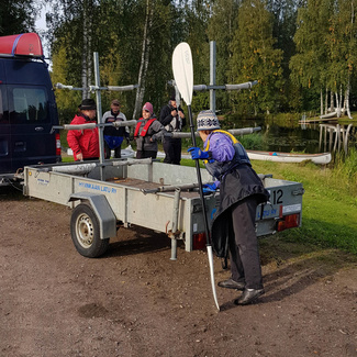 Ilma tuntui jo syksyiseltä, aamusta klo 9 vain kolme astetta lämmintä, kun lastailimme kalustoa peräkärryyn. Matkaan lähti 2 kpl avokaksikoita ja 2 kpl kajakkiyksikköä, eli äkkiä laskien 6 melojaa. Kahdella autolla ajelimme Oittiin, Puujoen varteen Matin ”reviirille”.