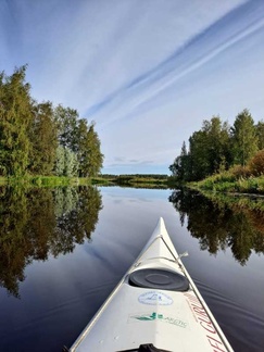 Aurinko näyttäytyi välillä ja oli olevinaan lämmintä, luodetuuli taas muistutti syksystä. Melontamatkaa kertyi edestakaisin n. 14 km.