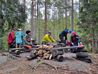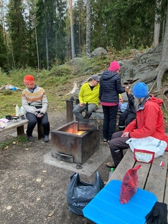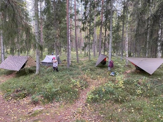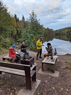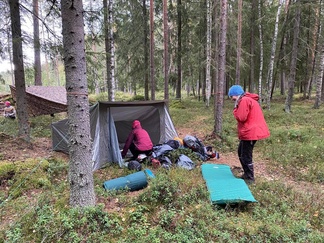 Viisi meistä jäi yöpymään retken päätteeksi Piilolammelle.