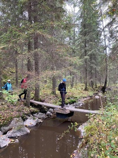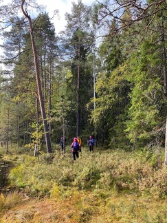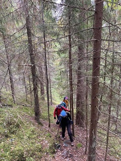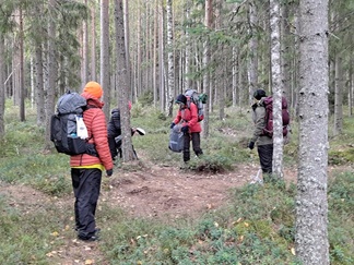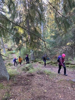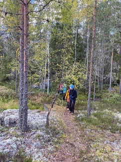 Reilu 14 km talsittiin paikoin rankassa maastossa lähestulkoon pelkästään polkuja pitkin.