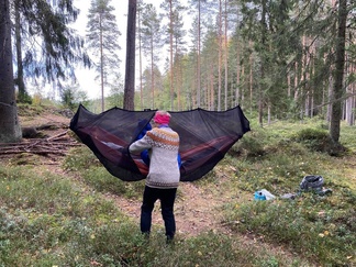 Tovi vietettiin iltanuotiolla ja melko hyvissä ajoin nukkumaan sen verran ulkoilu verotti voimia.