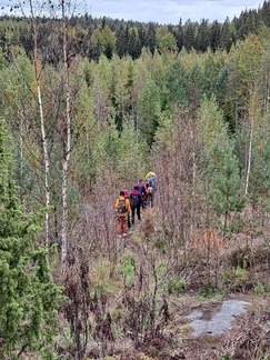 Reilu 14 km talsittiin paikoin rankassa maastossa lähestulkoon pelkästään polkuja pitkin.