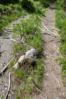 Eräs retkemme päämäärä oli myös Hevosmäessä opiston entisten kasvihuoneiden kohdalla metsässä oleva rodopuistikko, jossa arvelimme alppiruusujen kukintojen olevan ainakin viittä vaille avoinna. Havaitsimme paikanpäälle päästyämme näin myös olevan, vain osa kukinnoista oli avautunut. Ehkä parin päivän kuluttua siellä olevat kasvit alkavat olla täydessä loistossaan. Pitänee käydä paikan päällä vielä uudestaan.