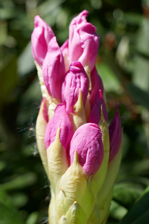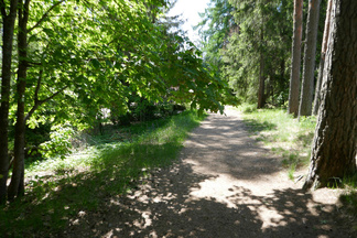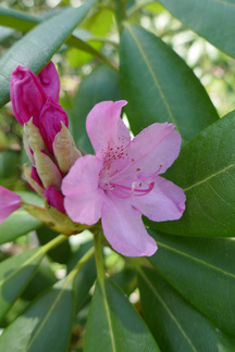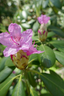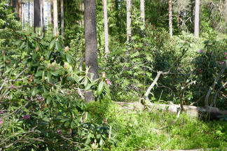 Eräs retkemme päämäärä oli myös Hevosmäessä opiston entisten kasvihuoneiden kohdalla metsässä oleva rodopuistikko, jossa arvelimme alppiruusujen kukintojen olevan ainakin viittä vaille avoinna. Havaitsimme paikanpäälle päästyämme näin myös olevan, vain osa kukinnoista oli avautunut. Ehkä parin päivän kuluttua siellä olevat kasvit alkavat olla täydessä loistossaan. Pitänee käydä paikan päällä vielä uudestaan.