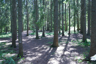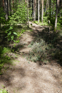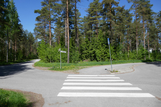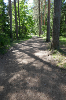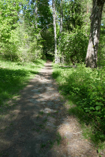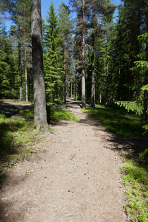 Palailimme Hyvinkäänkylän työväentalon ohitse kohti Pilvenmäkeä, Tuomentien päähän. Tuo matka on mahdollista kulkea kapeassa metsäkaistaleessa ja siitä kaupunkiin päin kuljettaessa voi tallustaa Puolimatkan koulun kentän reunaan asti oikeassa metsässä. Muutama kadunylitys on toki välissä.