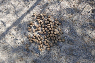 Soranottoalueen etelälaitamilla kasvaa runsaasti nuorta männikköä. Havaitsimme runsaasti hirvien ulostekasoja polulla, joka kiemurtelee tuon männikön halki kohti pysäköintipaikkaa. Hirvet aiheuttavat tuhoja männyntaimikoissa usein talvella, lehtipuut ovat niiden herkkua kesäisin. Hirviä emme kuitenkaan retkellämme tavanneet, emmekä myöskään muita eläimiä.