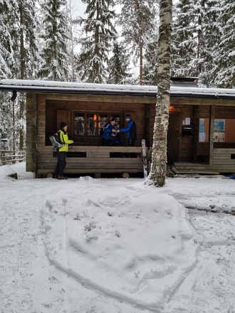 vähälumisia kohtia, jossa vauhtia piti vähän hiljentää. Kilvan kehuimmekin ladun kuntoa. Ladun majaa