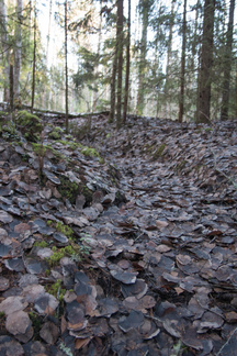 Isänpäivän sää oli oikeinkin sopiva patikointiin, aurinkokin näyttäytyi, lämpöä ja tuulta saman verran, +5. Maasto oli kuivahtanut eilisen tuulen jälkeen, housun puntit pysyivät varvikossakin kuivana, aikaisemmat sateetkaan eivät olleet jääneet maahan, vaan imeytyneet kuivan kesän jälkeen ”janoiseen” maahan.